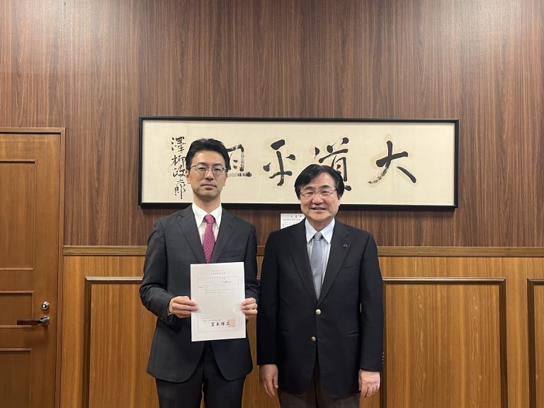 この度、本研究科の佐々木拓哉教授に東北大学リサーチプロフェッサーの称号が付与されました。リサーチプロフェッサー制度は、専門分野において高い研究業績を有し、かつ一定額以上の外部資金獲得が見込まれる者又は一定額以上の資金が措置される特定プロジェクトの代表者その他特定プロジェクトにおいて中心的な役割を担う教授に対し、その活動をサポートするものです。本研究科からは、すでに浅井禎吾教授(医薬資源化学分野)、秋田英万教授(薬物送達学分野)が東北大学リサーチプロフェッサーの称号が付与されており、3人目の称号付与となります。リサーチプロフェッサーの称号を付与された教授の活躍は、本学の他の教員の励みとなり、本学における研究の一層の推進及び社会への貢献が期待されます。東北大学大学院薬学研究科薬理学分野東北大学ホームページ 称号付与式での記念撮影|左から、佐々木教授、冨永総長