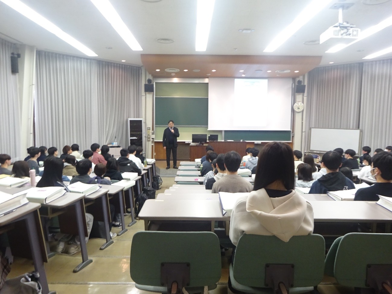 2026年4月4日(土)に新入生歓迎行事を行いました。今年度は90名の新入生を迎え、コミュニケーションに関する講演や、2・3年生薬友会学生によるレクリエーションなどのプログラムを実施しました。当日は和やかな雰囲気の中で交流が進み、新入生同士および在学生との親睦を深める機会となりました。また、4月6日(月)にはオリエンテーションの一環として分野(研究室)への仮配属を行い、座談会形式で教員や先輩学生との交流の機会を設けました。